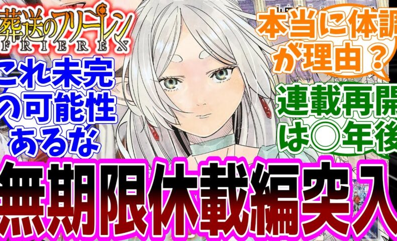 「初めての無期限休載告知に衝撃!連載再開はいつになる?/休載の本当理由は…/魔力消滅という大風呂敷でプロット崩壊?フリーレンの物語が終わってしまう」など